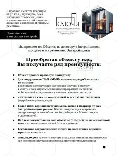 ЗАГОРОДНЫЙ ДОМ СО ВСЕМИ УДОБСТВАМИ В ПОСЕЛКЕ БИЗНЕС-КЛАССА ПО ЦЕНЕ КВАРТИРЫ!!!Срочная продажа, цена актуальна только до конца ноября!ПРОДАЕТСЯ УЮТНЫЙ ОДНОЭТАЖНЫЙ ДОМ В Клубном поселке ''ЛECHОЙ ОСTPOВ'', в полностью застроенном квартале Полянки-2, недалеко от Магазина ''Лесовичок'', в пешей доступности от основной инфраструктуры поселка.Хорошая планировка: кухня-гостиная около 50 кв.м с выходом на террасу, 3 спальни по 17 кв.м, кабинет, гардеробная, 3 санузла (один из них хозяйственный, в котором расположена котельная), высокие потолки.- Фундамент: бурозаливные сваи (3 метра), железобетонный ростверк, перекрытие фундамента- ж/б плиты.- Материал стен: кирпич Кемма с пазогребневым соединением, утеплитель, штукатурка - Материал кровли: металлочерепица Инси- Перекрытие между первым этажом и крышей - ж/б плиты- Сделан фундамент под забор и установлены столбыКоммуникации:- Центральное газоснабжение: установлен двухконтурный котел BAXI, теплые полы, радиаторы- Водоснабжение: индивидуальная скважина 40 м- Индивидуальная канализация: септик из двух колодцев- Смонтирована система кровельной вентиляции- Есть возможность подключения к РостелекомуВ доме выполнена предчистовая отделка: стяжка пола, стены оштукатурены, в сан узлах частично есть кафель и сантехника.Дом строился для себя из качественных материалов.Индивидуальный готовый дизайн-проект в подарок!Наш объект подходит для программы сельской ипотеки!''Лесной остров''- это крупный клубный поселок бизнес-класса всего в 20 мин езды от центра города, где городской комфорт сочетается со всеми прелестями загородной жизни . Расположен в развивающемся перспективном Западном направлении, в живописном местечке недалеко от Шершневского водохранилища, в окружении лесного массива. Недалеко расположены - поселки Западный, Северный, Кременкуль, Родной, Белые Росы, Дарьино, ЖК Привилегия, Белый хутор, Образцово, Малинки вилладж.Развитая инфраструктура: собственный оборудованный пляж с искусственным водоемом, кафе, ресторан, частный детский садик, детские и спортивные площадки, продуктовый магазин с собственным производством готовых блюд и доставкой, клиника Источник и многое др.Отдел продаж КП ЛЕСНОЙ ОСТРОВ- Сосновский район, Челябинская область, дер. Малиновка, ул.Градостроителей 1Наше объявление вы можете найти по запросу: купить дом, коттедж, земельный участок, загородная недвижимость, коттеджные поселки, Лесной остров, Сосновский район, Челябинская областьЕсли вы еще не были в Лесном острове и хотите ощутить по-настоящему высокий уровень жизни, обязательно записывайтесь на экскурсию и просмотр!Если Вас заинтересовал данный объект, в любом случае - пишите, звоните, мы готовы к диалогу.Рассмотрим все конструктивные предложения и дадим обратную связь!ID объекта в нашей базе: 162