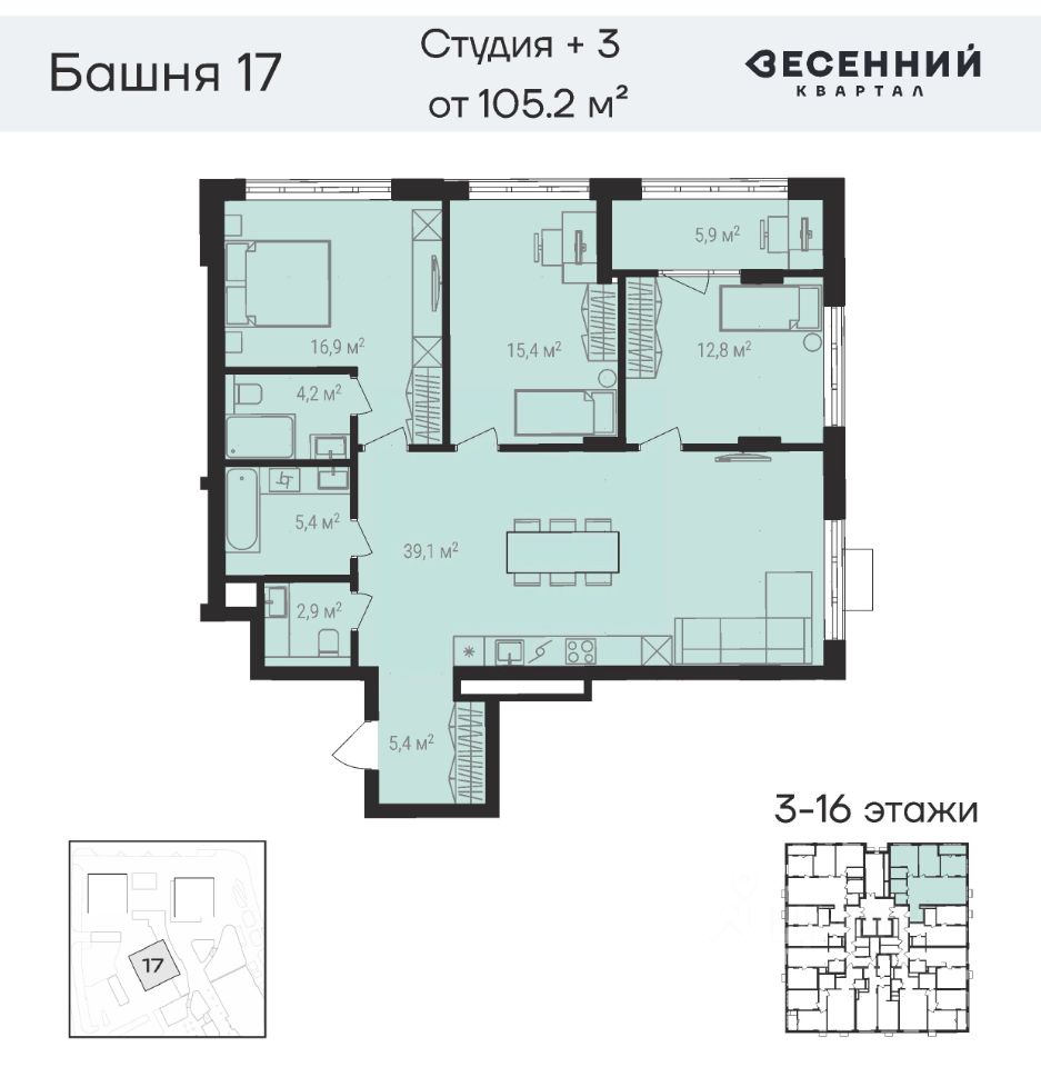 107 м² · Этаж 14 из 17