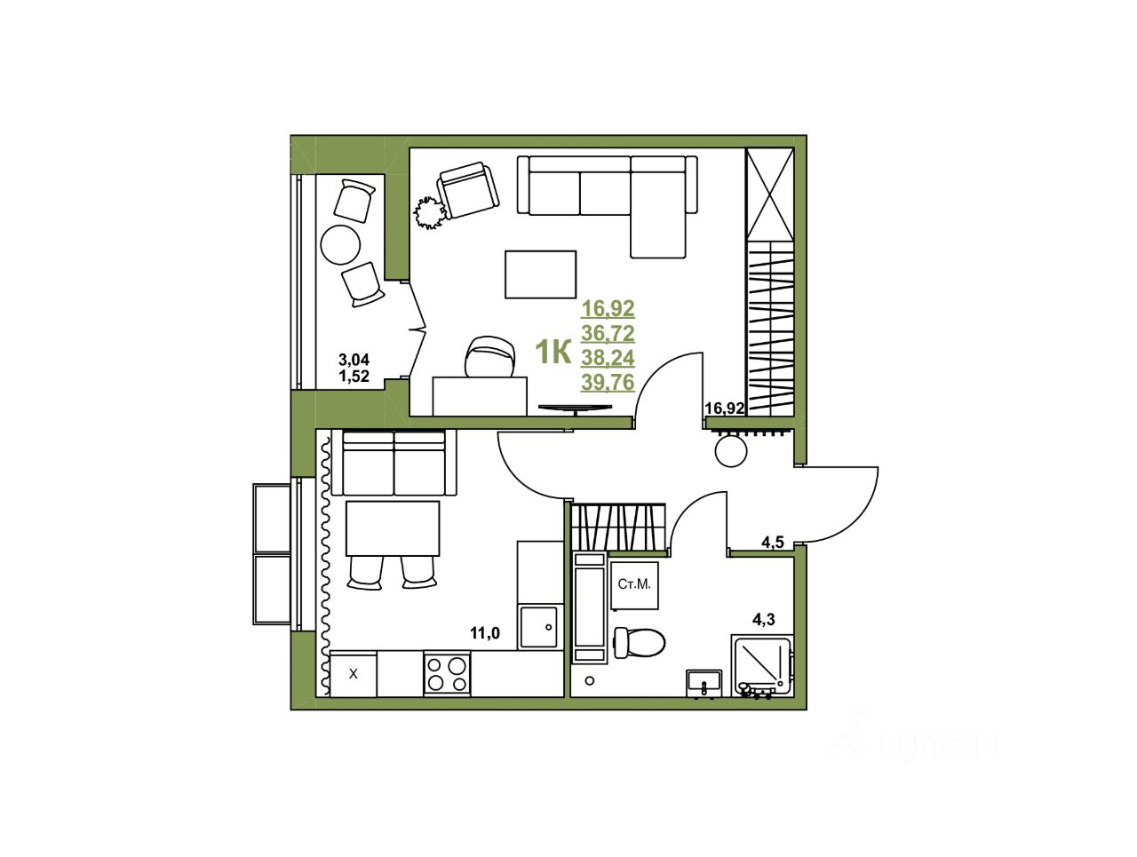 38 м² · Этаж 8 из 16