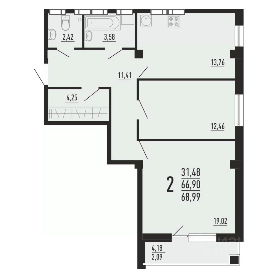 68 м² · Этаж 12 из 16