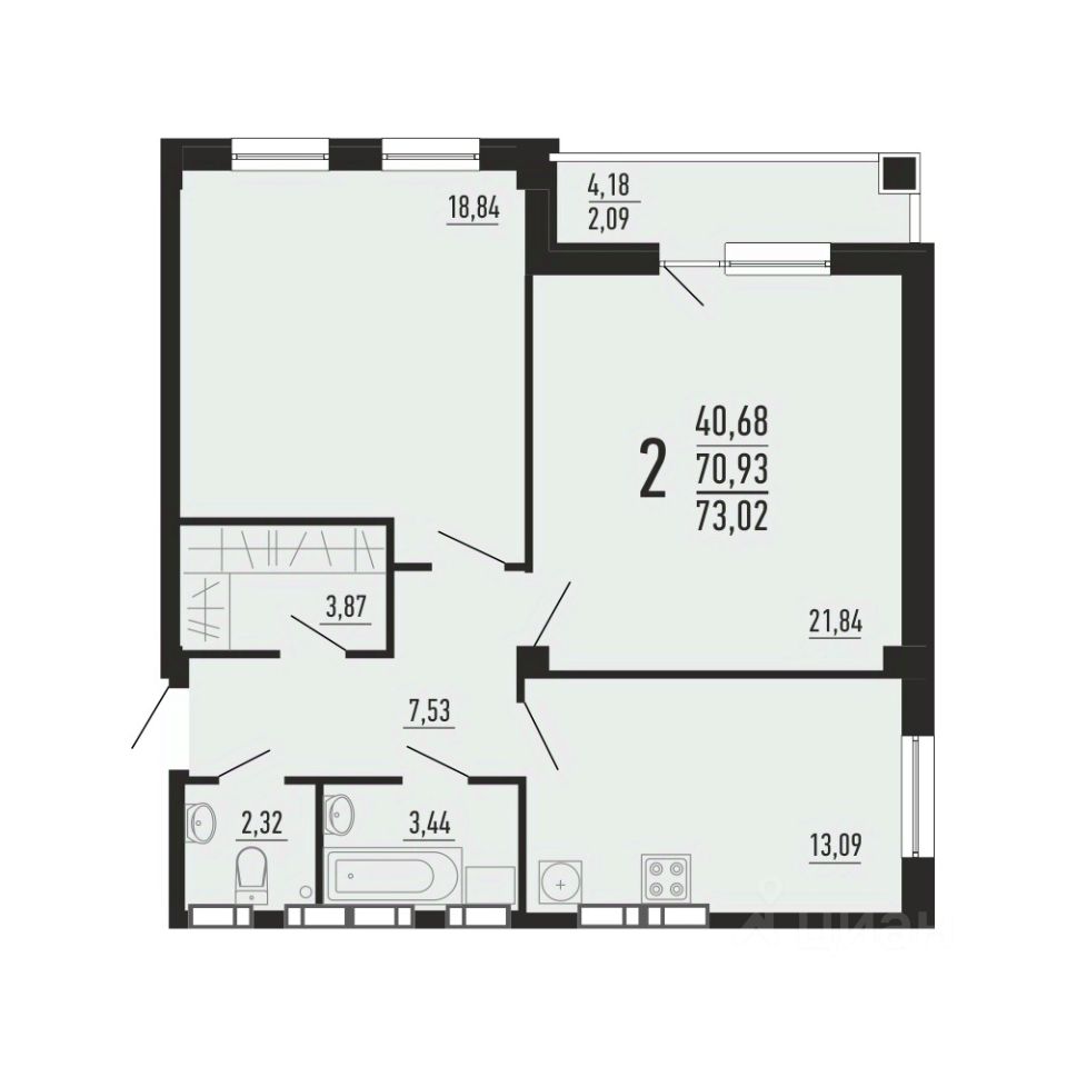 Продаётся квартира в новом монолитно-каркасном доме в 50 мкр Паркового (кв. 58). ул. Александра Шмакова, 4 (стр). От застройщика! Дом с УМНЫМИ СИСТЕМАМИ: - видеонаблюдение за двором - умные приборы учета с автоматической передачей показаний - работа с УК через мобильное предложение - огороженный двор с системой контроля доступа 1-комнатная квартира (43 кв.м) с функциональной планировкой: •Большая прихожая с гардеробной 7,3 кв.м •Квадратная комната 18,8 кв.м •Просторная кухня 11,8 кв.м •Совмещенный санузел •Лоджия ЧЕРНОВАЯ ОТДЕЛКА. Записывайтесь на экскурсию!
