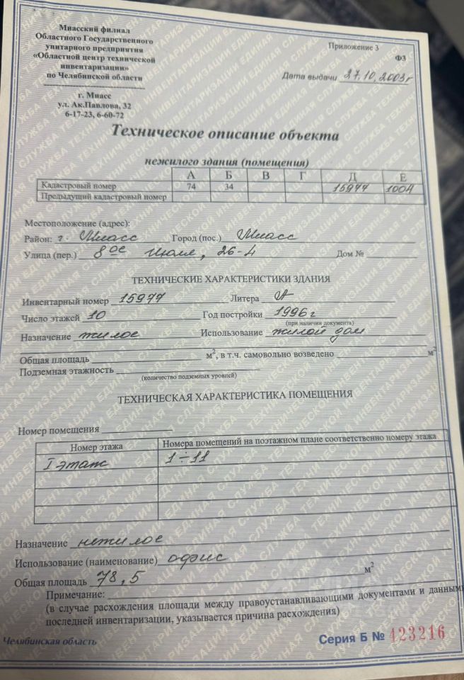 Продается нежилое помещение на втором этаже. Общая площадь 1778,5 кв.м. с кадастровым номером 74:34:1500009:2098, расположенное по адресу: Челябинская область, г. Миасс, ул. Степана Разина, дом 12 принадлежит на праве собственности ООО Торговая фирма Детский мир. •Право собственности зарегистрировано в ЕГРН 04.07.2008 под 74-74-34/067/2008-481. •Население г. Миасса составляет 146 650 человека. Данное нежилое помещение находится в отдельно стоящем здании, расположенном в районе ж/д вокзала, это густонаселенный район в центре города с 9 и 5 этажными жилыми домами. На первом этаже располагаются такие ритейлеры, как Пятерочка, Красное и белое, а также ряд небольших продуктовых магазинов. Материал стен: кирпич. Год постройки: 1988. •В подвале расположены технические помещения, лифты, помещения складского назначения. На первом этаже с юго-западной стороны здания расположена входная группа в помещение с лестничной клеткой, с северной стороны здания расположен дебаркадер, лифты и лестничный пролет. Имеются два подъездных пути, пресс для картона. На втором этаже расположены торговые залы (1275,1 кв.м.), а также служебные кабинеты, бытовые помещения, лифты, лестничный марш на технический этаж. Технический этаж представляет собой лестничную клетку при выходе на крышу здания. •В настоящее время на втором этаже располагаются арендаторы с промтоварным рядом (игрушки, детская, женская одежда, хозтовары, бытовая химия, парфюмерия, FixPrice). •Коммуникации: холодное водоснабжение, канализация, электроснабжение, отопление центральные. Для реальных покупателей возможен торг! Также возможна продажа через продажу самого ООО