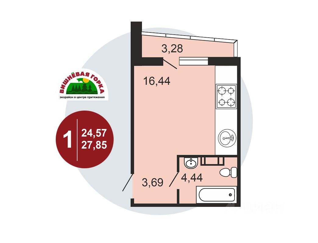 продам 1-к, Олимпийская (мкр Вишнёвая горка), 51 стр.3 172 004 ₽