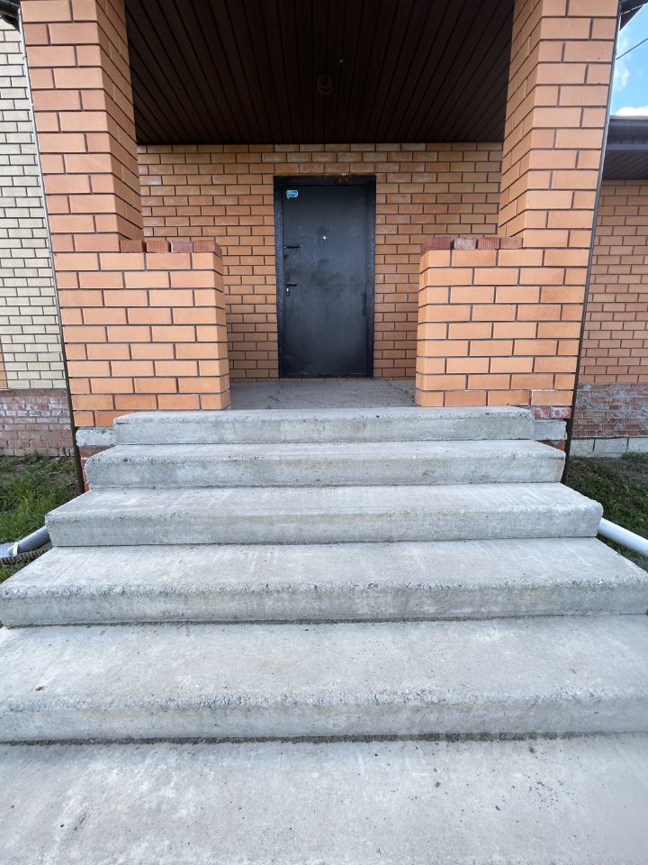 На территории имеется фундамент под гараж, планируется строительство входной группы.
