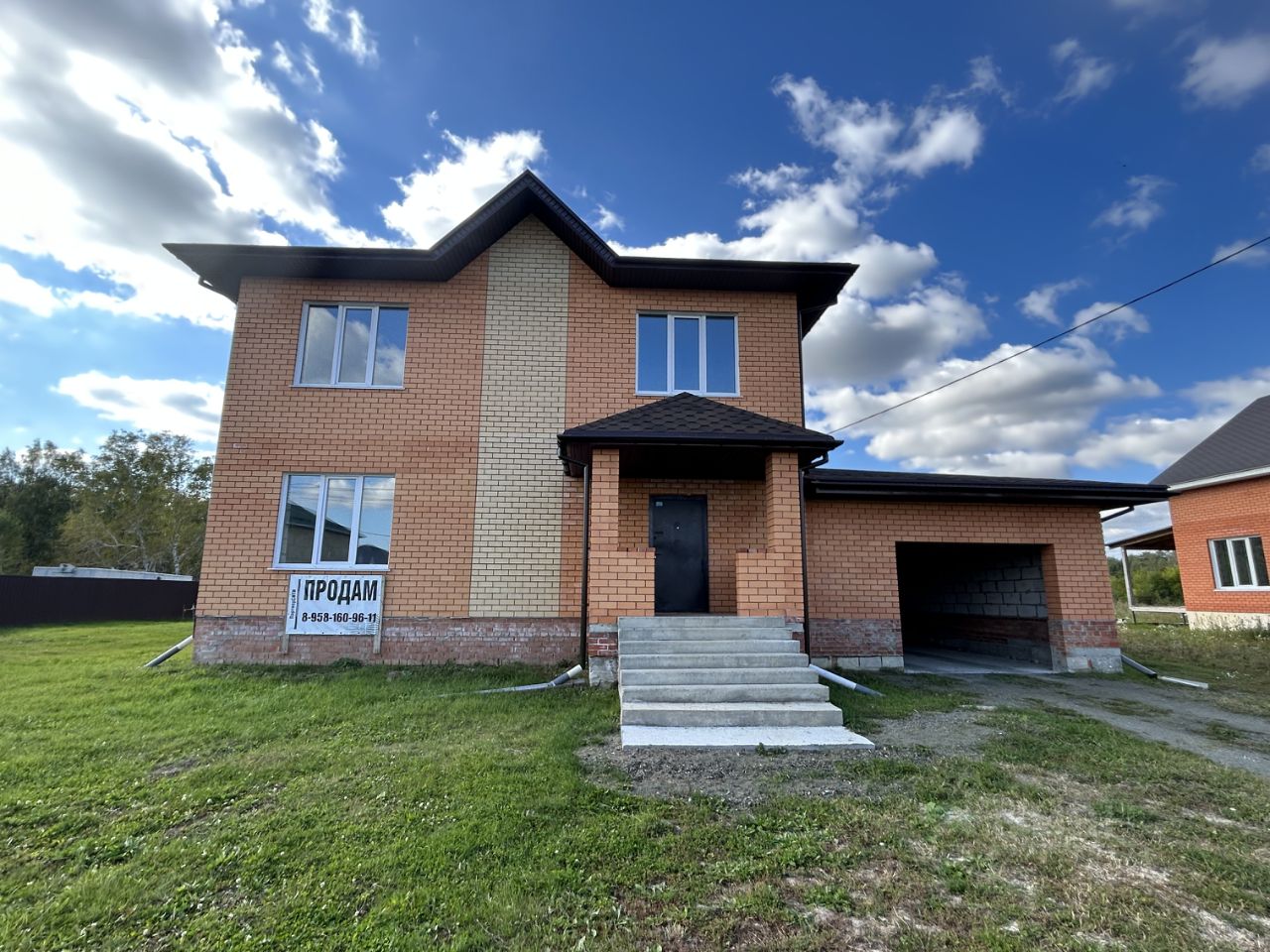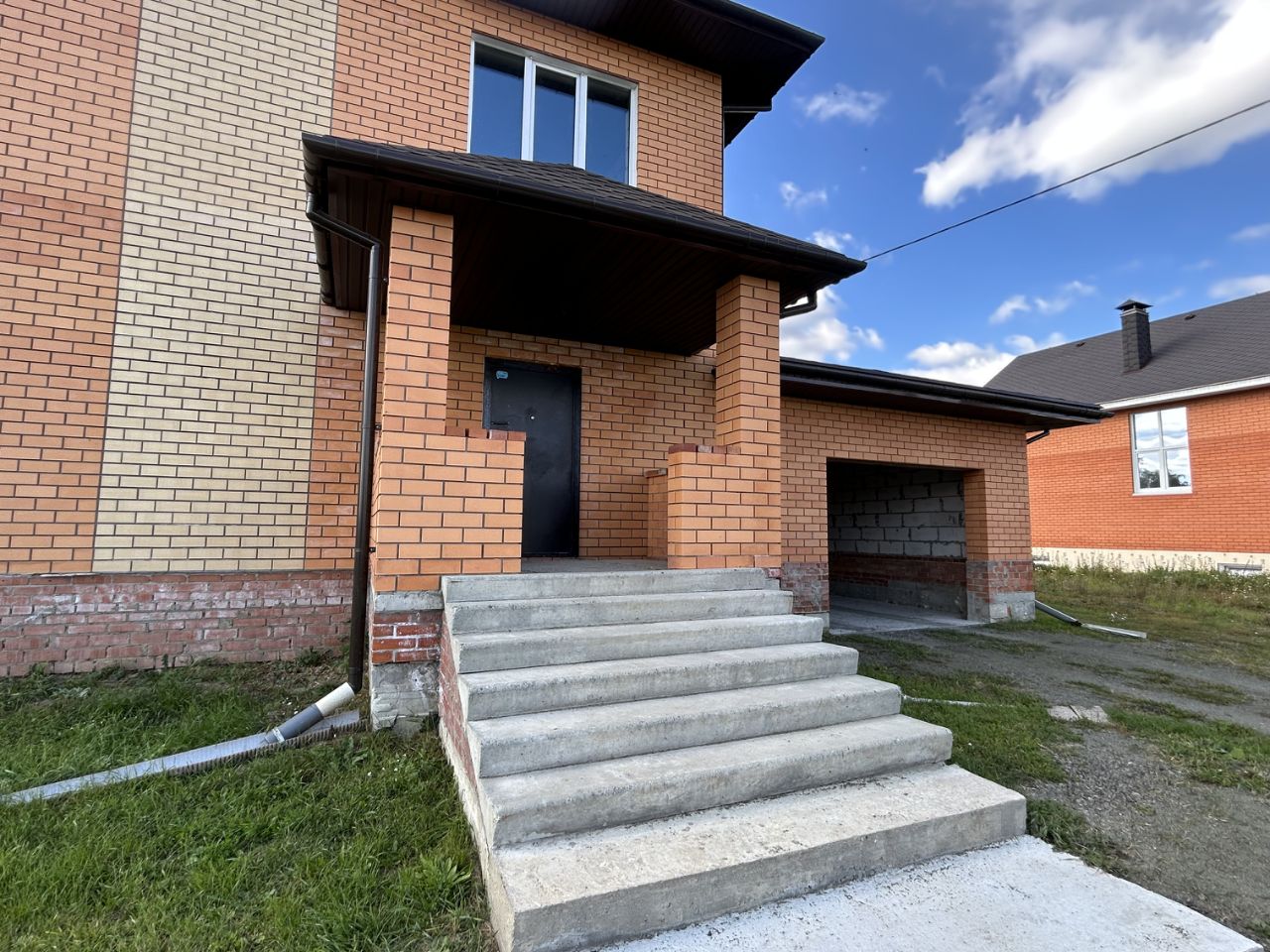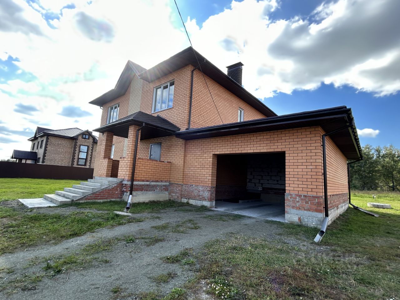 Дом выполнен из кирпича, крыша - металлочерепица, установлен тройной стеклопакет, в доме проведены подготовительные работы.