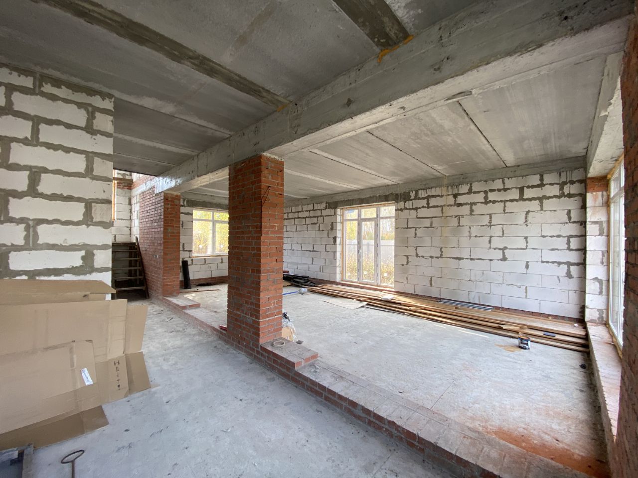 Новый коттедж для постоянного проживания, 2023 года постройки. Расположен в поселке Белые Росы (в 9-ти км от Шершневской плотины, напротив Кременкуля, граничит с п. Родной). Общей площадью 180м2 в 2-а этажа: 1ый этаж: крытое крыльцо 5м2, прихожая/холл 9.8м2, гостевой с/у 3.6м2, котельная/тех.помещение 5.18м2 с отдельным выходом на улицу, кухня 12.3м2, столовая-гостиная 29м с выходом на улицу и возможностью организовать террасу, гостевая комната 14м2. 2ой этаж: холл 7м2, ванная комната с с/у 9м2, спальня 26м2, 2е спальни по 14.7м2 каждая. Материалы и конструктив: - фундамент: монолитная утеплённая армированная плита, толщиной 500см, - стены: наружные выполнены из газоблока толщиной 400мм + облицовка керамическим кирпичом.
