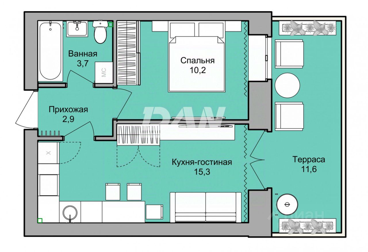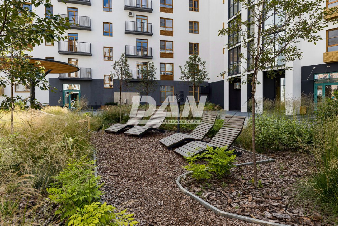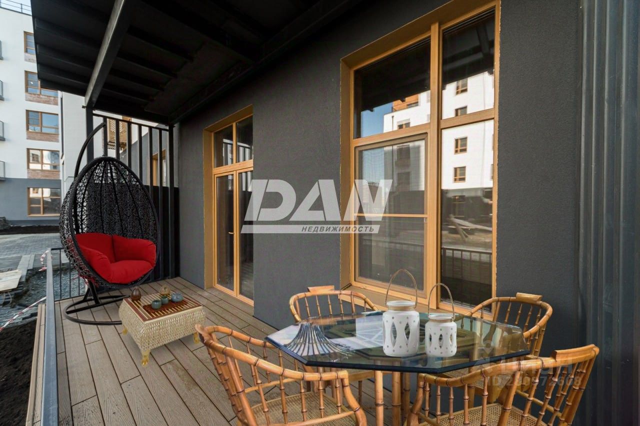 Окна квартиры выходят во двор, особенностью квартир являются высокие потолки 3,6 м, терраса, панорамные окна, большая кухня-гостиная.