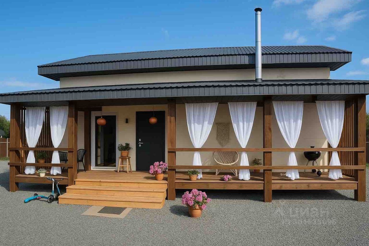 Дом внутри обшит имитацией бруса.