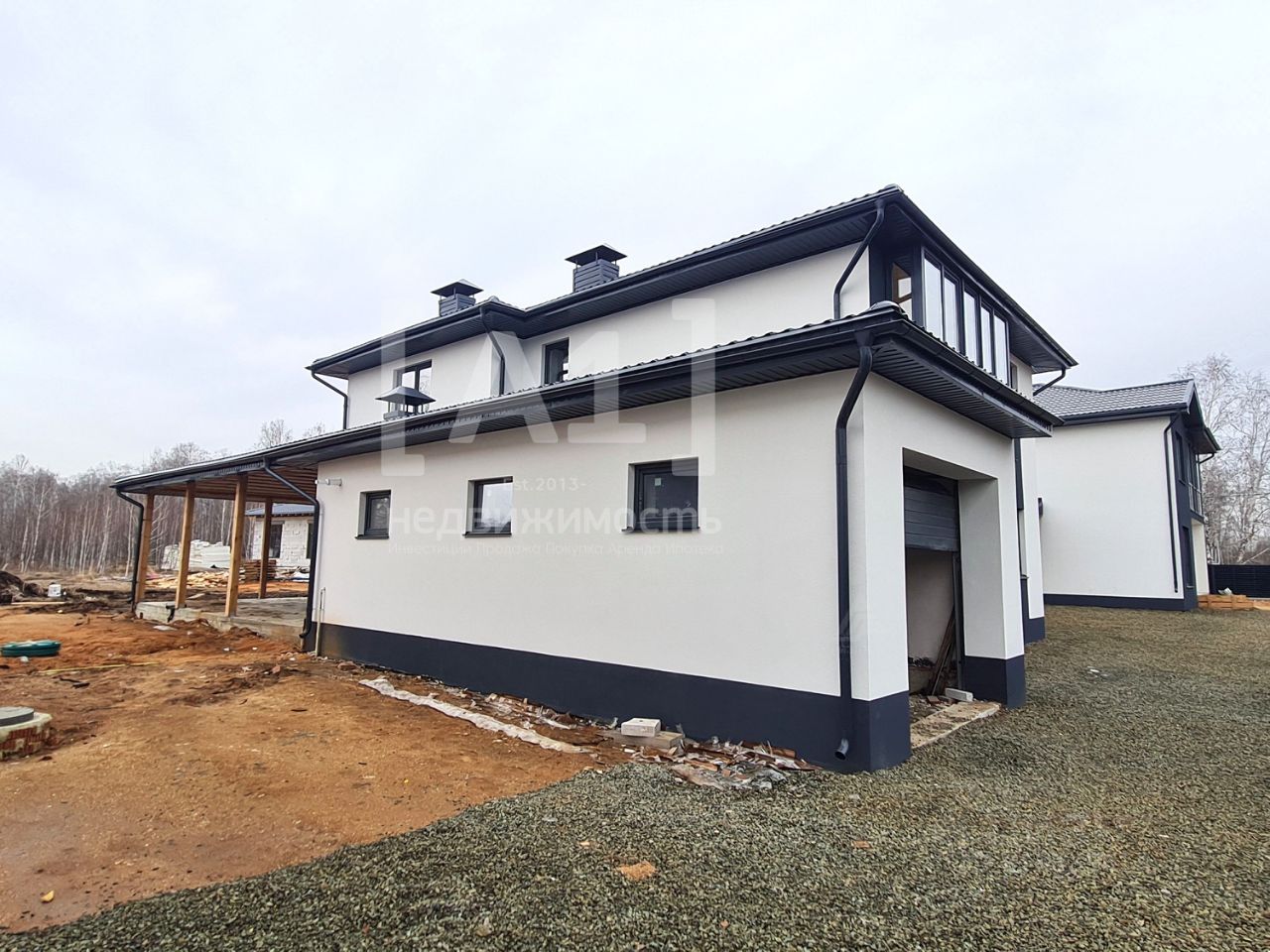 Фундамент :- Сваи бурозаливные диаметром 300мм высотой 2м через каждые 2м по периметру дома .- Буроленточный фундамент 600х400 (арматура метал 12мм ) по всему периметру дома .- Засыпка (скала +щебень) 600мм . -Фундамент перекрыт монолитной плитой толщиной 200мм (арматура металл 12мм) Стены : - Наружние -выполнены из газоблока толщиной 400мм- Дополнительно установлено наружное утепление 50 мм с соблюдением всех технологических норм .-Наружная Штукатурка ( мокрый фасад) .-внутри все стены оштукатурены под финишную отделку и укладку плитки . Крыша : - Четырехскатная перекрыта металлочерепицей с утеплением на 200мм.- Система вентиляции с выходом на кровлю .