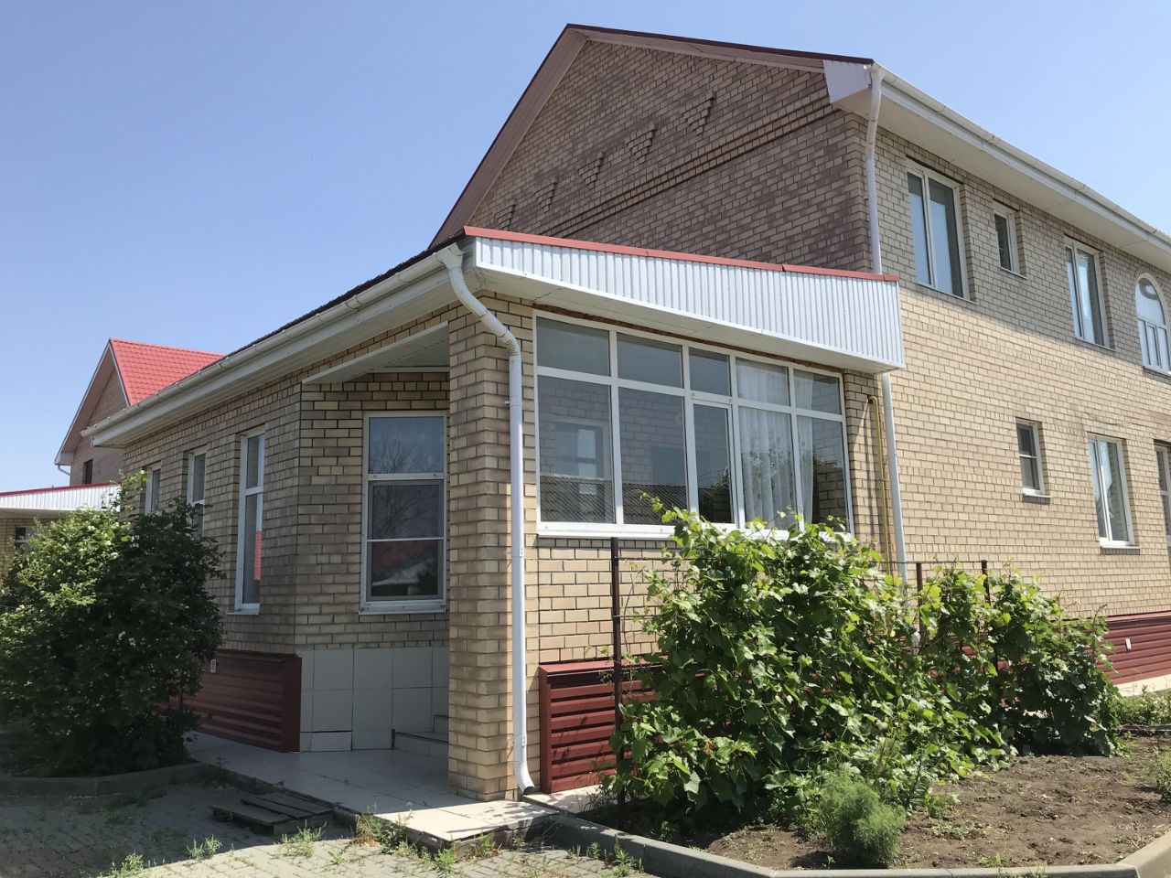 Дом располагается в спокойном месте, на участке имеется собственная скважина, хозяйственные постройки, теплицы, двор выложен плиткой, гараж на две машины, газовое отопление дома и бани.