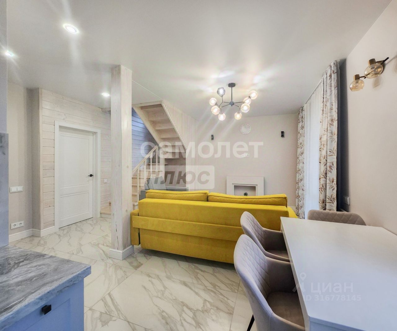о доме. Год постройки 2020 Площадь дома 100м2. В доме 4 комнаты и большая кухня гостинная, технические помещения. На 1 этаже: кухня-гостинная, санузел с ванной, гостевая комната, техническое помещение. Терраса, прихожая с крыльцом. на 2 этаже: спальня с балконом, две комнаты по 12 метров, санузел. Дoм построен пo каркасной технологии, толщина cтeн 300 мм. Выполнен дизайнерский ремонт, с использованием качественных отделочных материалов. Отопление - тёплые полы и Коузи. Управление со смартфона. В Доме установлена сигнализация.