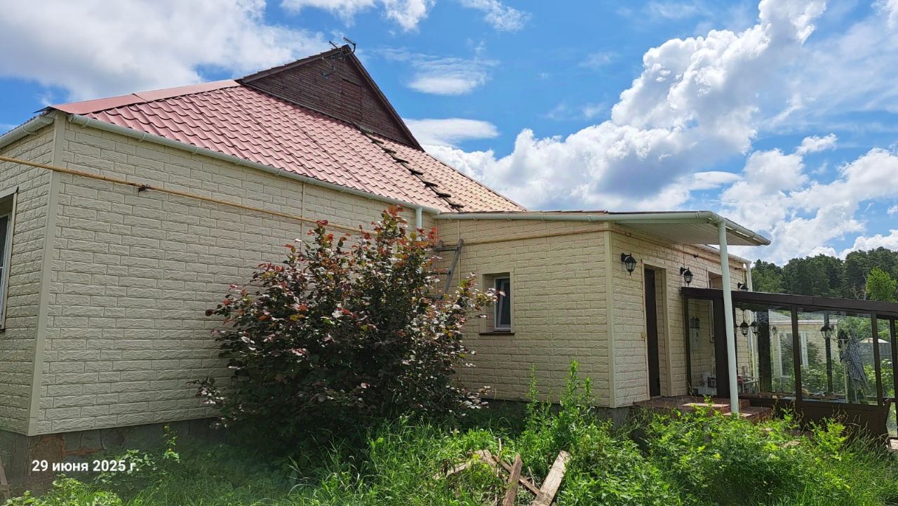 В прогулочной доступности до бора, (дом находится на ул. Набережной) речки и озера, расположен капитальный кирпичный дом. Толщина стен в 2,5 кирпича, фасад облицован сайдингом по утеплителю толщиной 100 мм. на металлическом каркасе. Покрытие и перекрытие дома из сборных ж/б плит. При желании можно отделать мансардный этаж. Установлен новый двухконтурный газовый котел. В доме две спальни, просторный зал, прихожая, бойлерная-кладовая, кухня-столовая и холл, раздельный саузел и душевая. На участке: баня (3,57 м.) с гостевой комнатой, парной и помывочной, гараж со смотровой ямой и отоплением (56 м.) из блоков, покрыт ж/б плитами, отдельно расположенный монолитный погреб (23 м.), теплица (48 м.), вольер для большой собаки, мангальная зона, терраса, навес, 2 хозпостройки, площадка под каркасный бассейн. Газоны, плодовые деревья с кустарниками: яблони, груши, сливы, смородина, малина, ежевика, виноград.