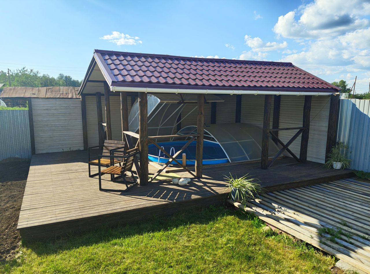 • Терраса с навесом и вкопанным бассейном.