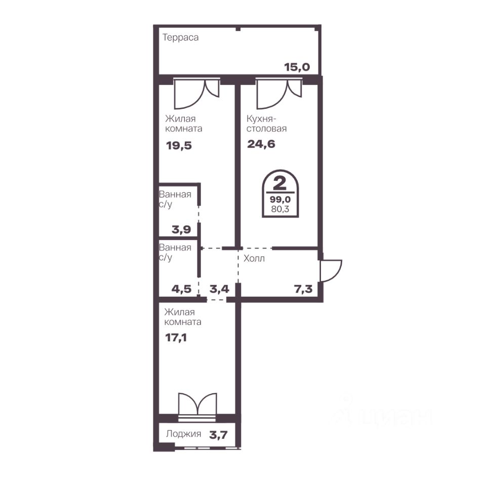 Общая площадь80,3 м2