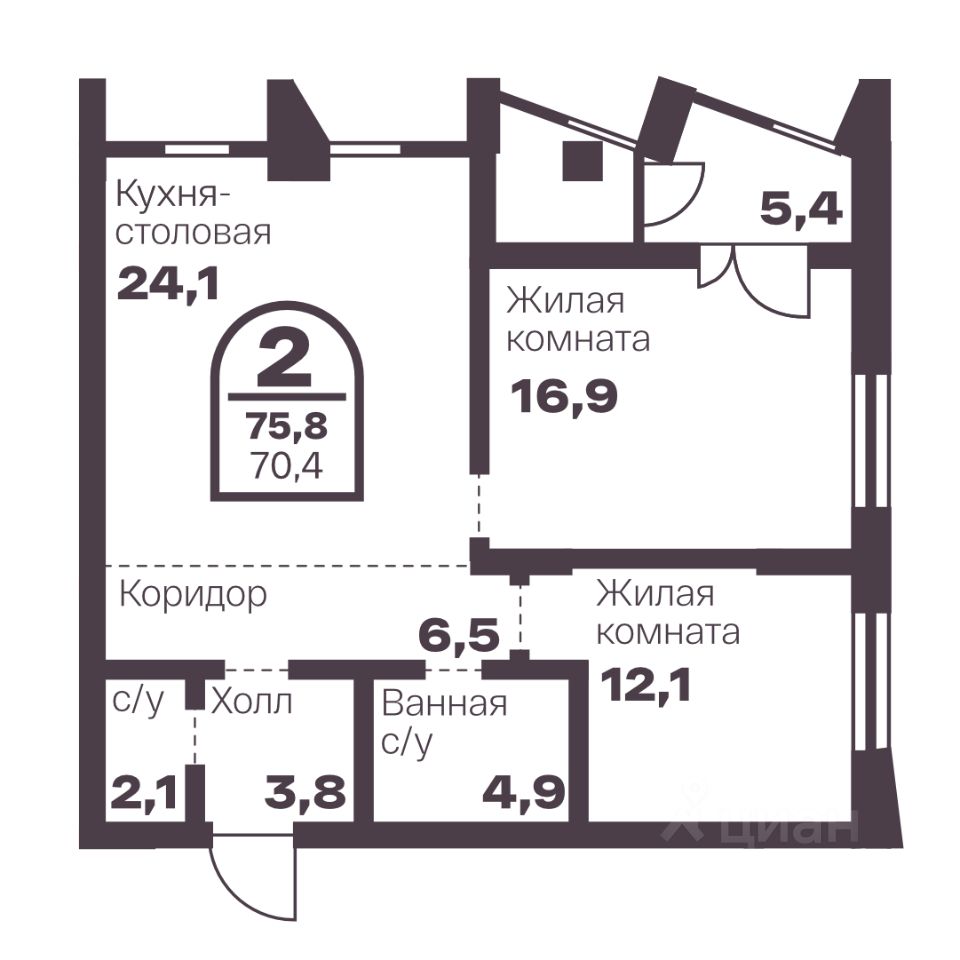 Общая площадь70,4 м2