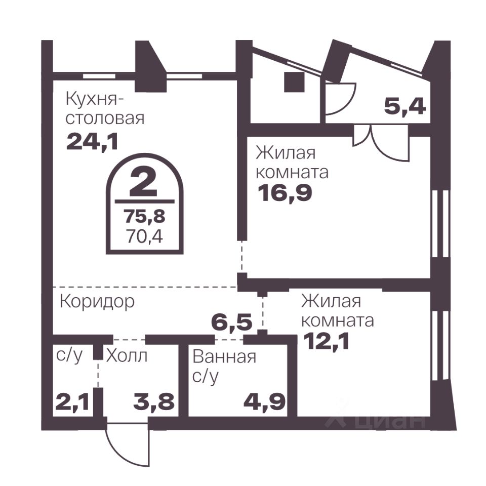 Общая площадь70,4 м2