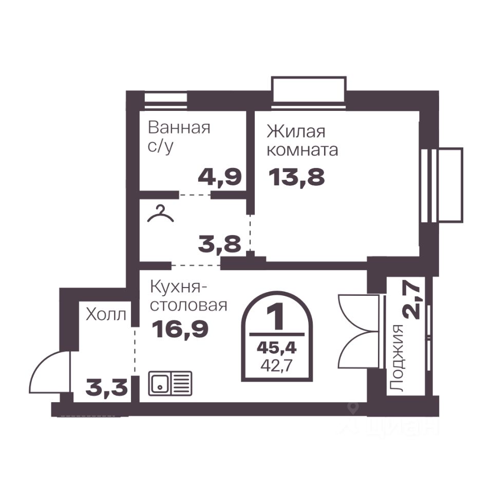 Общая площадь42,7 м2