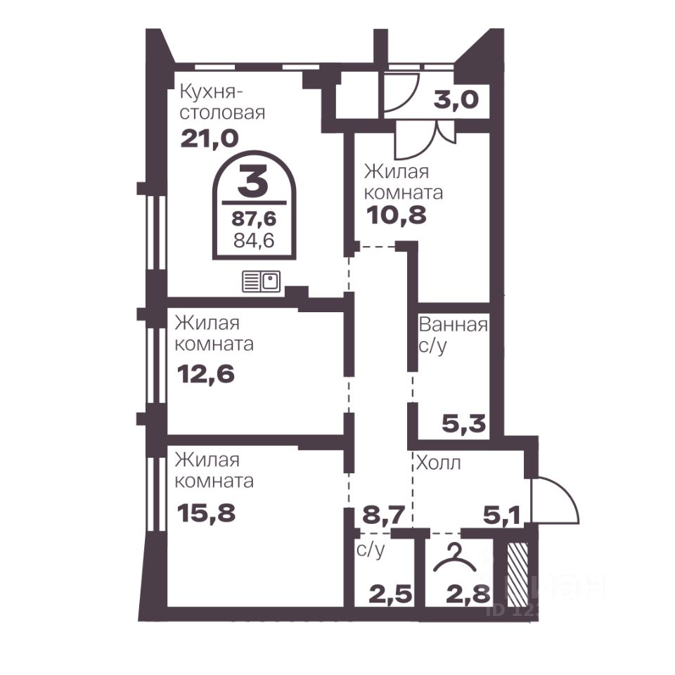 Общая площадь84,6 м2
