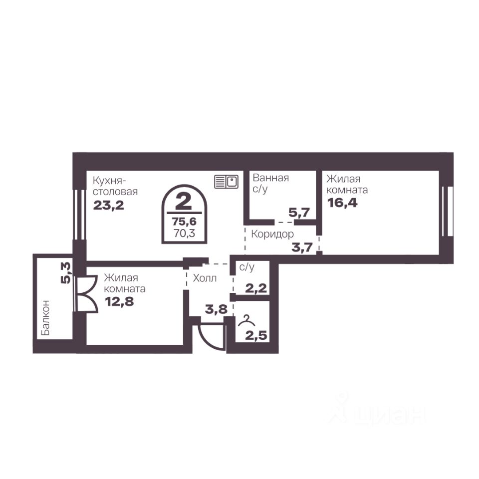 Общая площадь70,3 м2