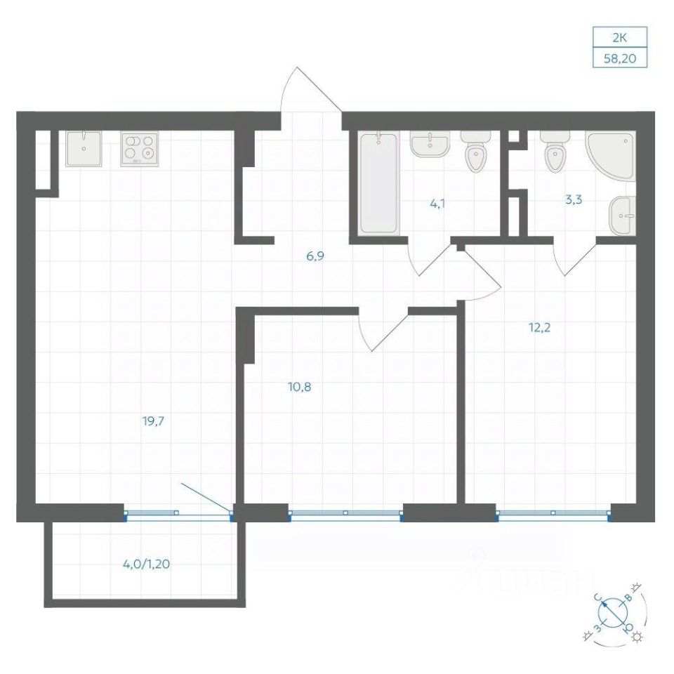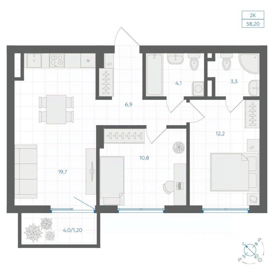 Общая площадь58,2 м2