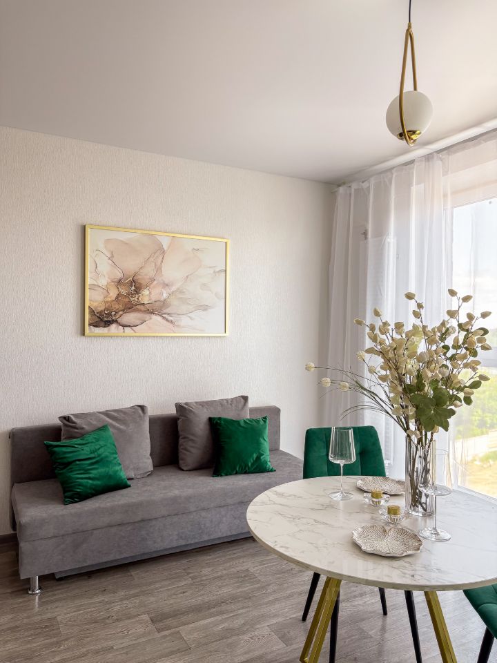 В Квартире выполнена чистовая отделка в светлых пастельных тонах, полностью укомплектована для Вас с любовью по принципу заезжай и живи. В подарок для Вас остается вся мебель и техника, перечень элементов декора предоставляется по запросу.