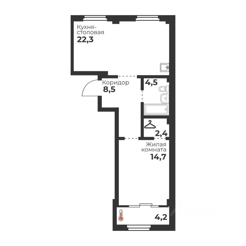 Жилая площадь14,7 м2