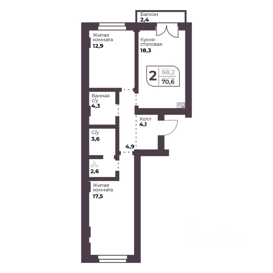 Общая площадь68,2 м2