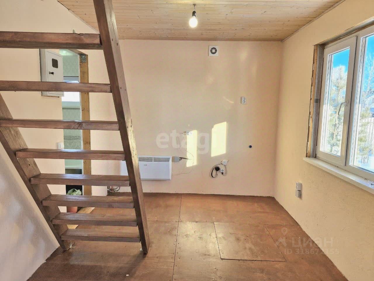 Описание дома: - место высокое, сухое, солнечное, - дом новый, окончание строительства - 2024 год, каркасный, хорошо утеплён, интересный дизайн фасада, - общая площадь 74 кв.м., 2 этажа, один из которых мансардный, - удобная планировка: 1-й этаж: кухня-прихожая с межэтажной лестницей, гостиная, кабинет-спальня, совмещённый санузел, 2-й этаж: большая единая комната с возможностью функционального зонирования или разделения на две комнаты, - коммуникации: электричество 15кВт, разводка по всему дому, установлены электрорадиаторы, водоснабжение - скважина на участке, канализация - септик, подана заявка на газификацию (магистраль проходит в 5 м от земельного участка), - отделка: 1-й этаж полностью отделан, в санузле установлено сантехническое оборудование: ванна, унитаз, водонагреватель, автоматика насоса с расширительным баком, мансардный этаж утеплён и уложен пол, требуется финишная отделка, - пластиковые окна, на входе две двери, - под домом есть подвал для хранения заготовок и овощей.