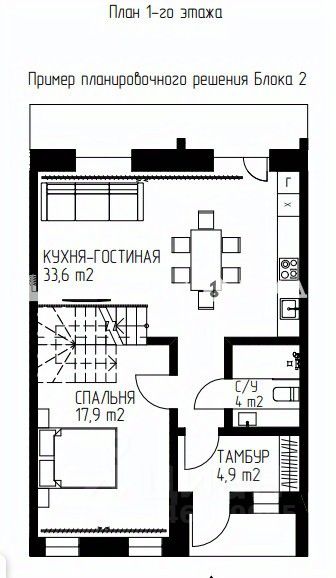 Планировка 1 этаж -прихожая -коридор -санузел -комната, которую можно использовать как спальню или кабинет -кухня-гостиная с выходом на участок 2 этаж Свободная планировка. Можно разместить санузел и 3 спальни.