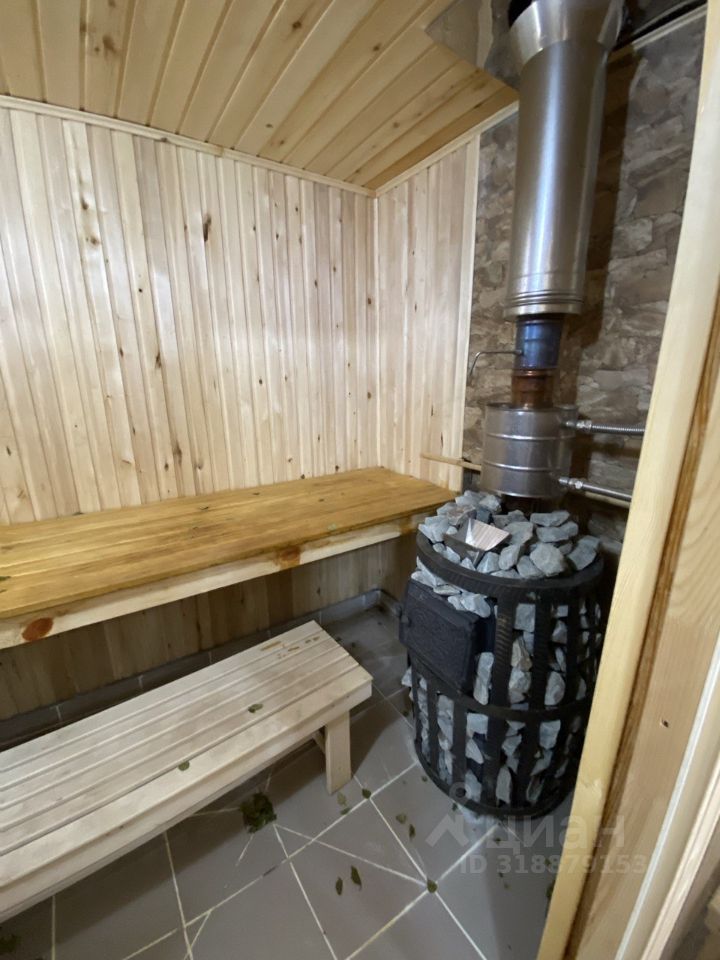 БАНЯ Баня запущена в 2023 году, построена из цилиндрического бруса, на бетонном ленточном фундамента. Разделена на 3 зоны: зона отдыха, помывочная зона и парилка. В бане установлена чугунная печь Легенда русский пар ковка. Мойка обшита вагонкой, на полу керамогранит с теплым полом. Парилка обшита вагонкой, на полу керамогранит, полок выполнен из африканского дерева абаши (не нагревается).