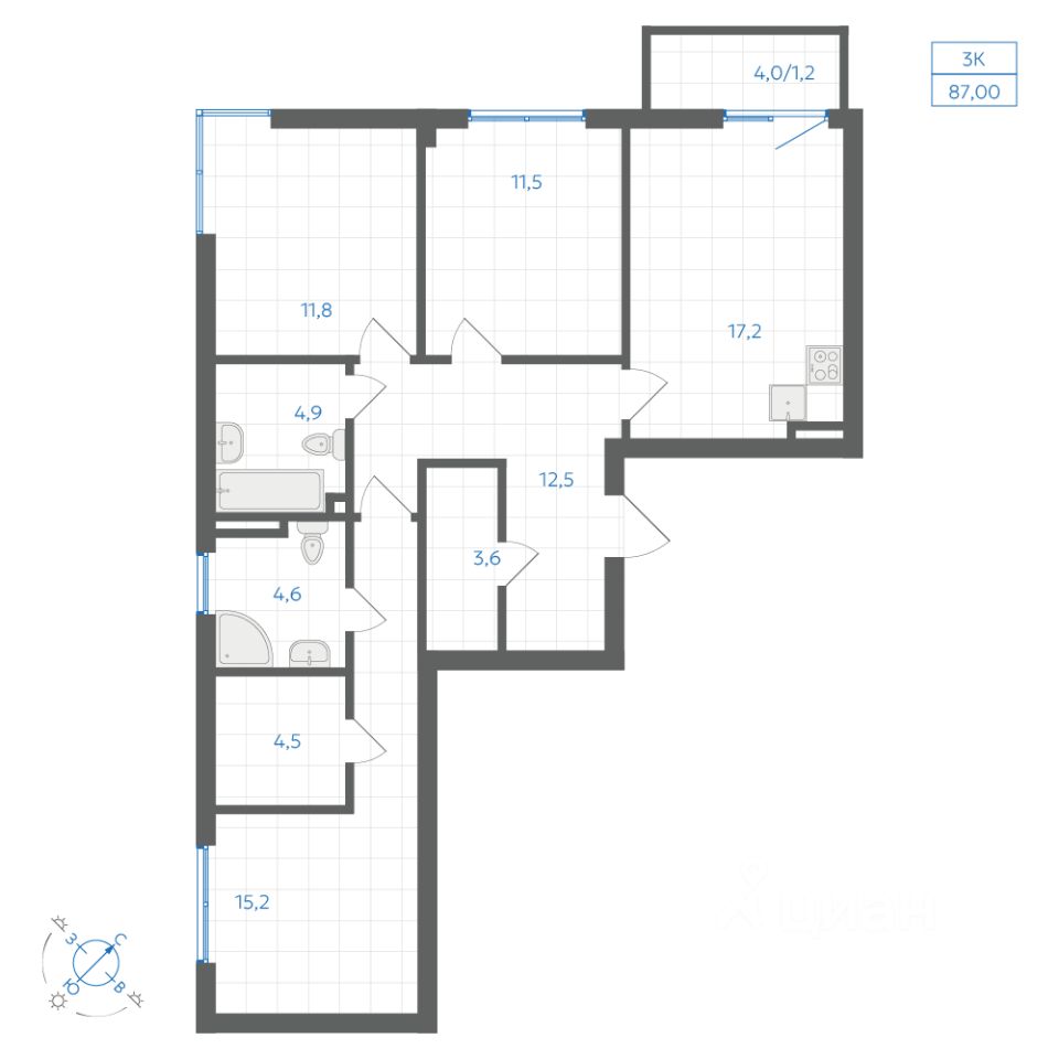 Общая площадь87 м2
