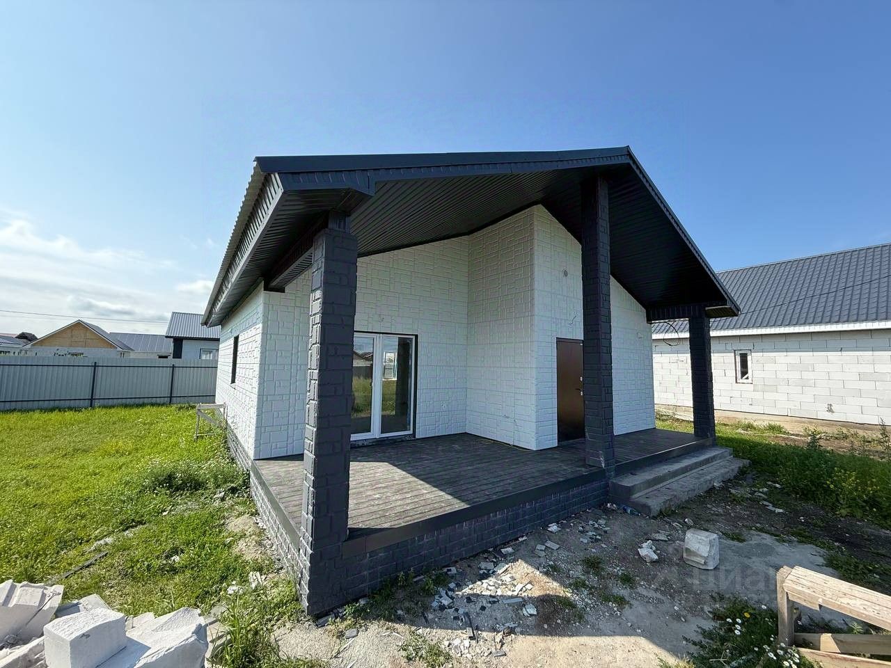 Характеристики: - 80м2 полезной площади - 20м2 терраса - надежный фундамент с большим запасом прочности и теплыми полами по всему периметру - мягкая отмостка - газоблок ИНСИ 300мм - армопояс - окна с двухкамерным стеклопакетом и качественной фурнитурой. Ламинация под цвет кровли - входная дверь с терморазрывом - перекрытие утеплено базальтовой крошкой 200мм - кровля профилированный лист толщиной 0,45мм ГОСТ - установлены водоотливы - фасад дома закрыт теплопанелями толщиной 50мм с декоративным покрытием - в доме разведены все коммуникации (вода, слив, электричество) - установлен электро котел 9кВт для теплого пола и вся система отопления - стены оштукатурены - водонагреватель на 80 литров