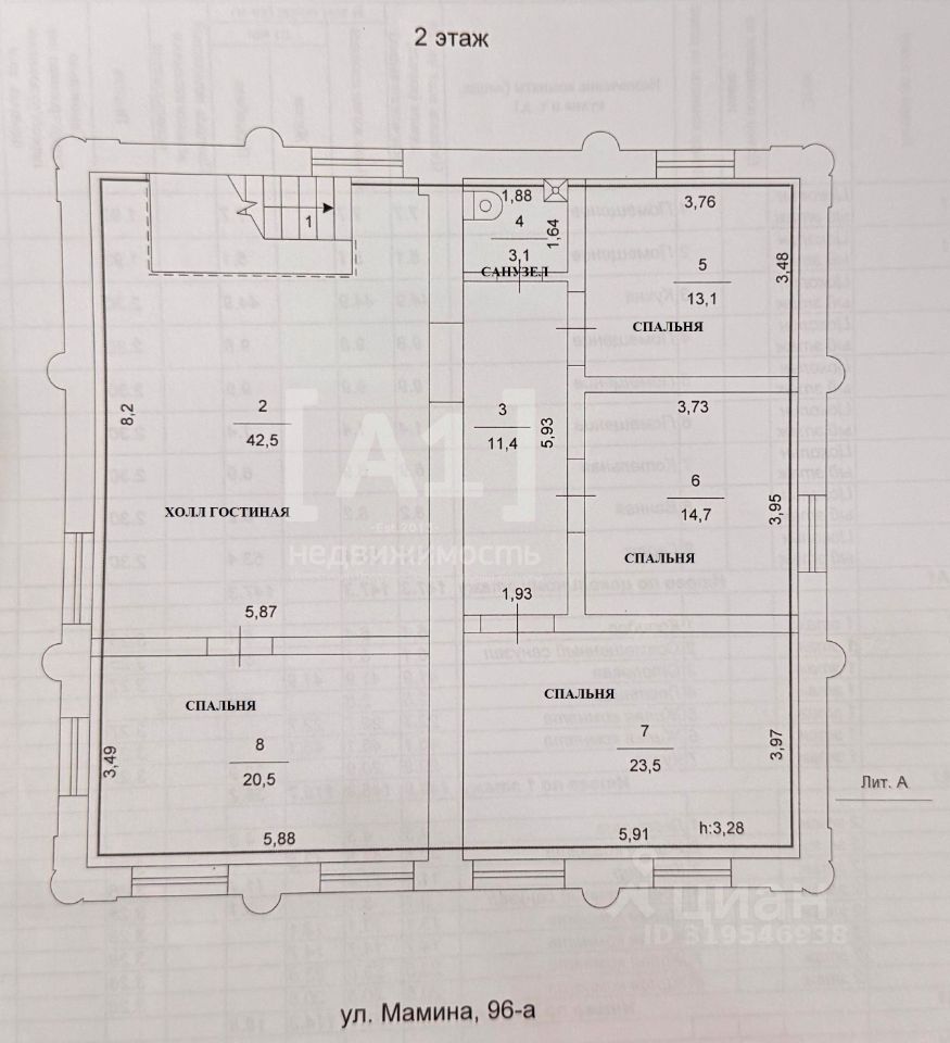 Предлагаю в покупку большой уютный дом, расположенный на перовой линии, от дороги огорожен деревьями, расположен по адресу: ул. Мамина, 96а. Дом построен из кирпича в 2002 году. Фундамент - фундаментные блоки. Железобетонные плиты перекрытия между этажами. Высота потолка 3,50 м.
