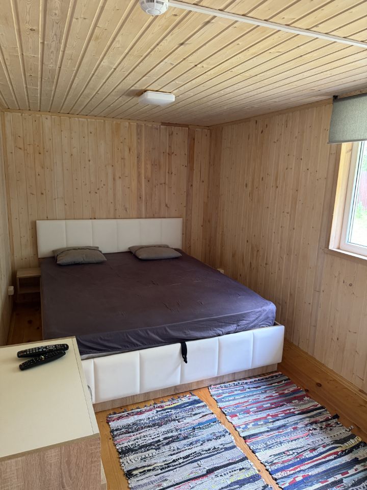 Шикарная дача на летний период. На участке в 22 сотки имеются два дома - один основной с двумя комнатами (в каждой комнате есть телевизор), в спальне - двухспальная кровать с удобным матрасом, большой вместительный шкаф, две тумбочки, зеркало, телевизор, в гостиной - раскладывающийся диван, кухня, индукционная плита, микроволновка, чайник, кофемашина, посудомойка, телевизор, стол со стульями, тумба, камин. Также в этом доме находится с/у с душевой кабиной, стиральной машиной, раковиной и водонагревателем и отдельная комната с холодильником, полками и крючками. Еще в доме есть большая веранда с мягкими окнами и дверью, столик, стулья.