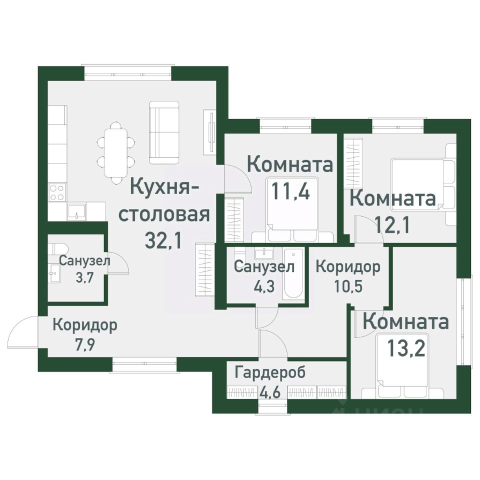 Квартиры в готовых и строящихся домах. Застройщик сотрудничает с различными банками. Действует программа ''Квартира с мебелью'', которая позволяет включить в ипотеку покупку мебели! Квартиры в готовых и строящихся домах. Застройщик сотрудничает с различными банками. Продаётся студия + 3 спальни общей площадью 100,25 кв.м. в загородном районе комфорт-класс ''ТвояПривилегия''. Он расположен в перспективной локации города с точки зрения экологии, далеко от производств на берегу Шершневского водохранилища, в 20 минутах от центра Челябинска.
