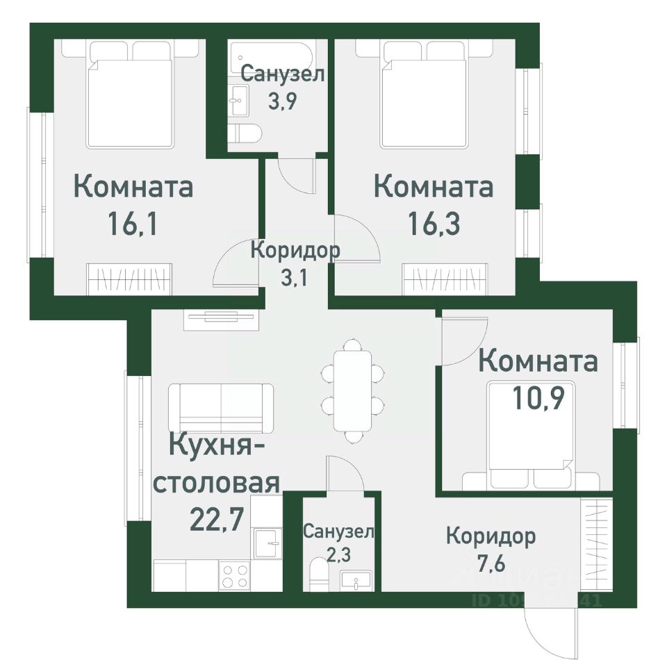 продам 3-к, Академическая, гп 6.114 498 750 ₽