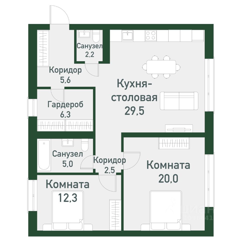 продам 2-к, Академическая, гп 6.114 546 000 ₽