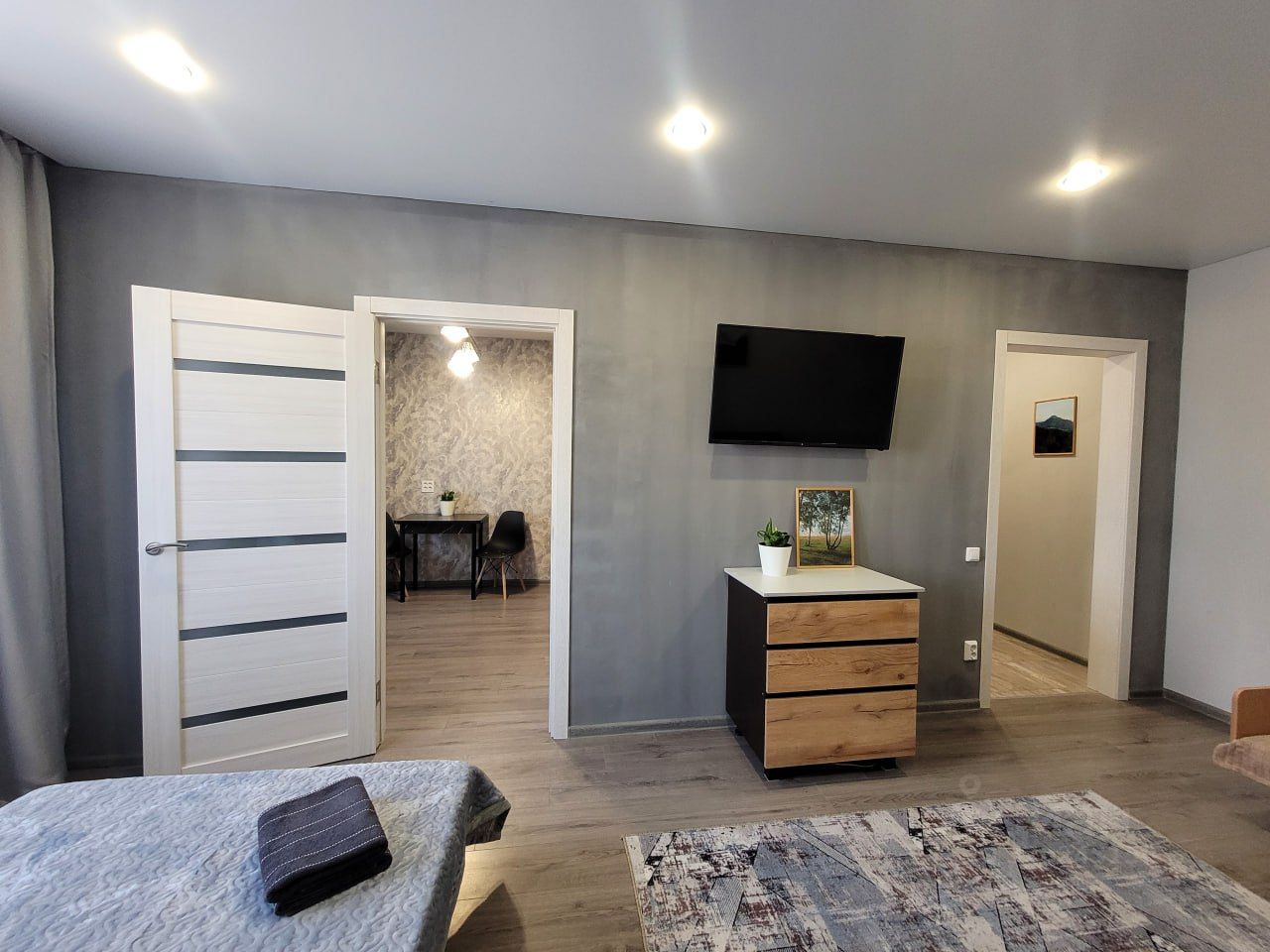 О КВАРТИРЕ: - один двуспальный диван - одна односпальная кровать, - одна двуспальная кровать (120*200), - высокоскоростной интернет wi-fi, - совмещенный санузел.