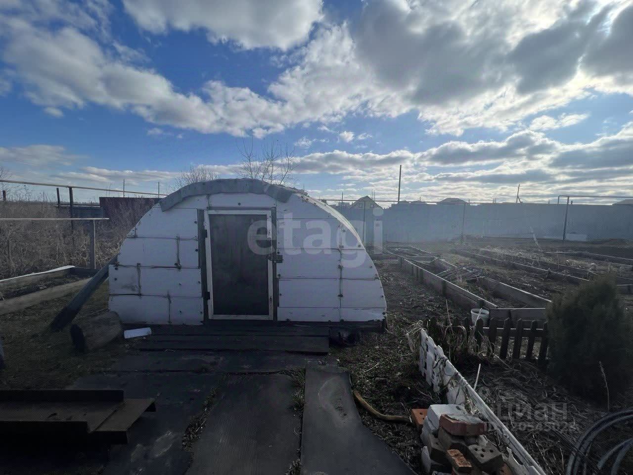 На участке теплица, 3 вишни, 4 яблони.