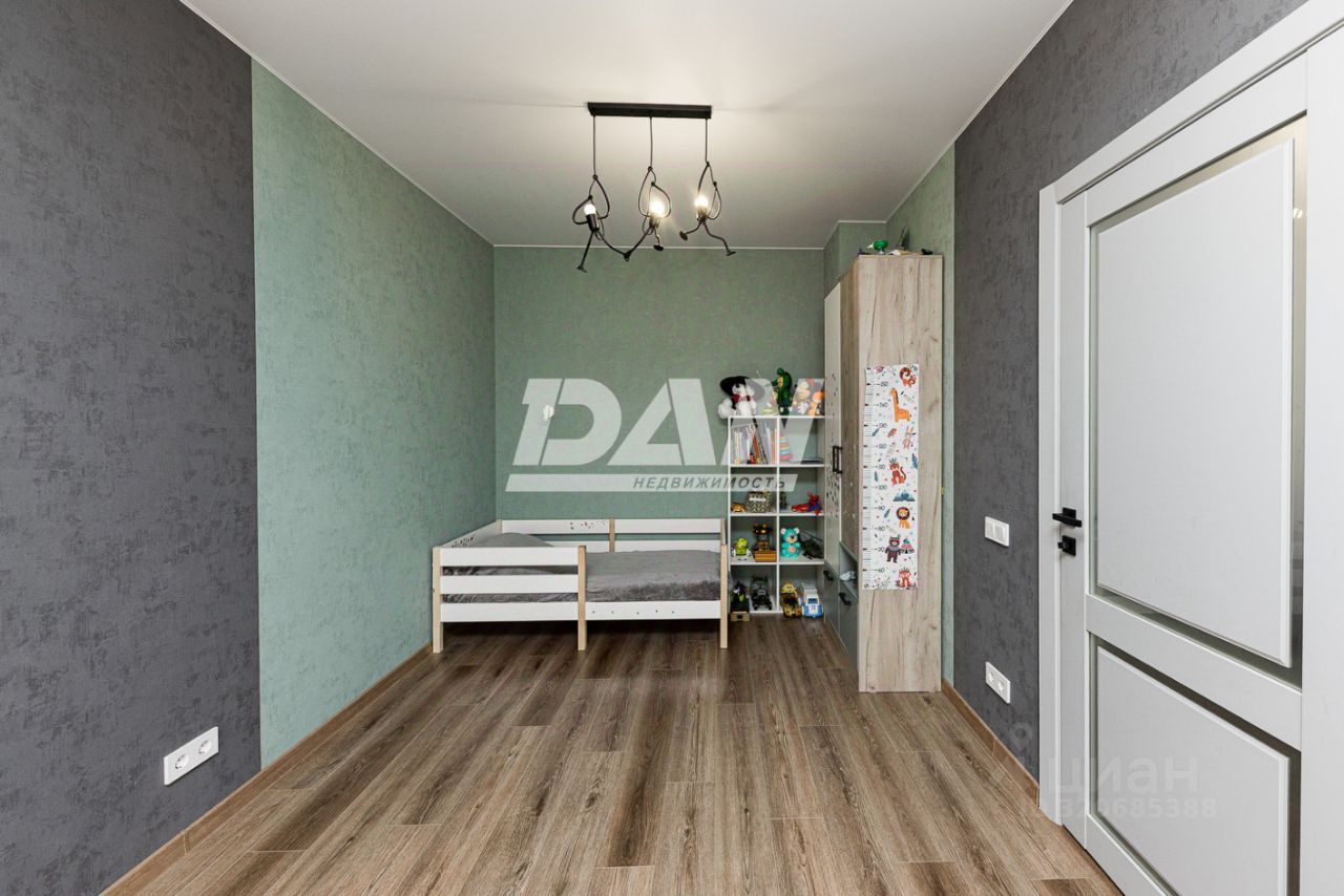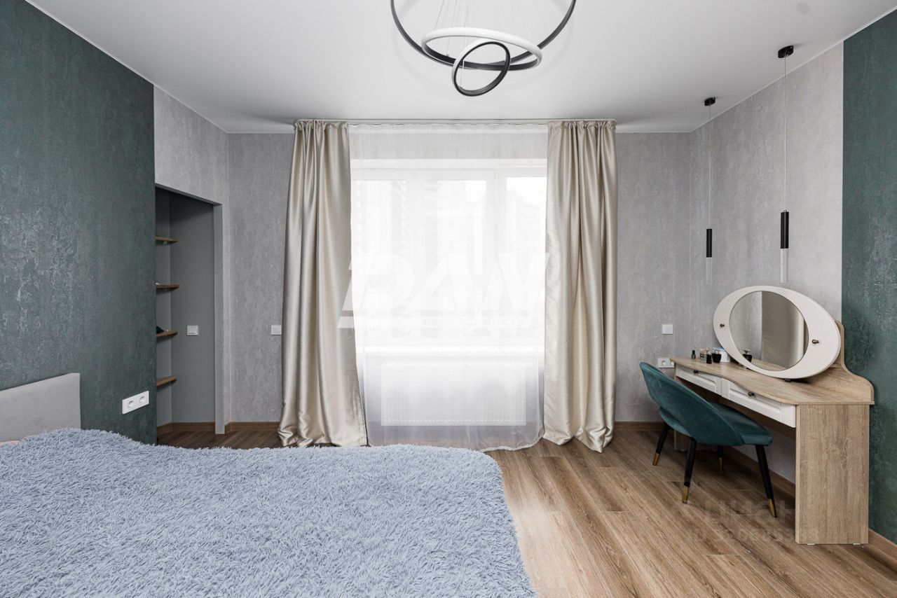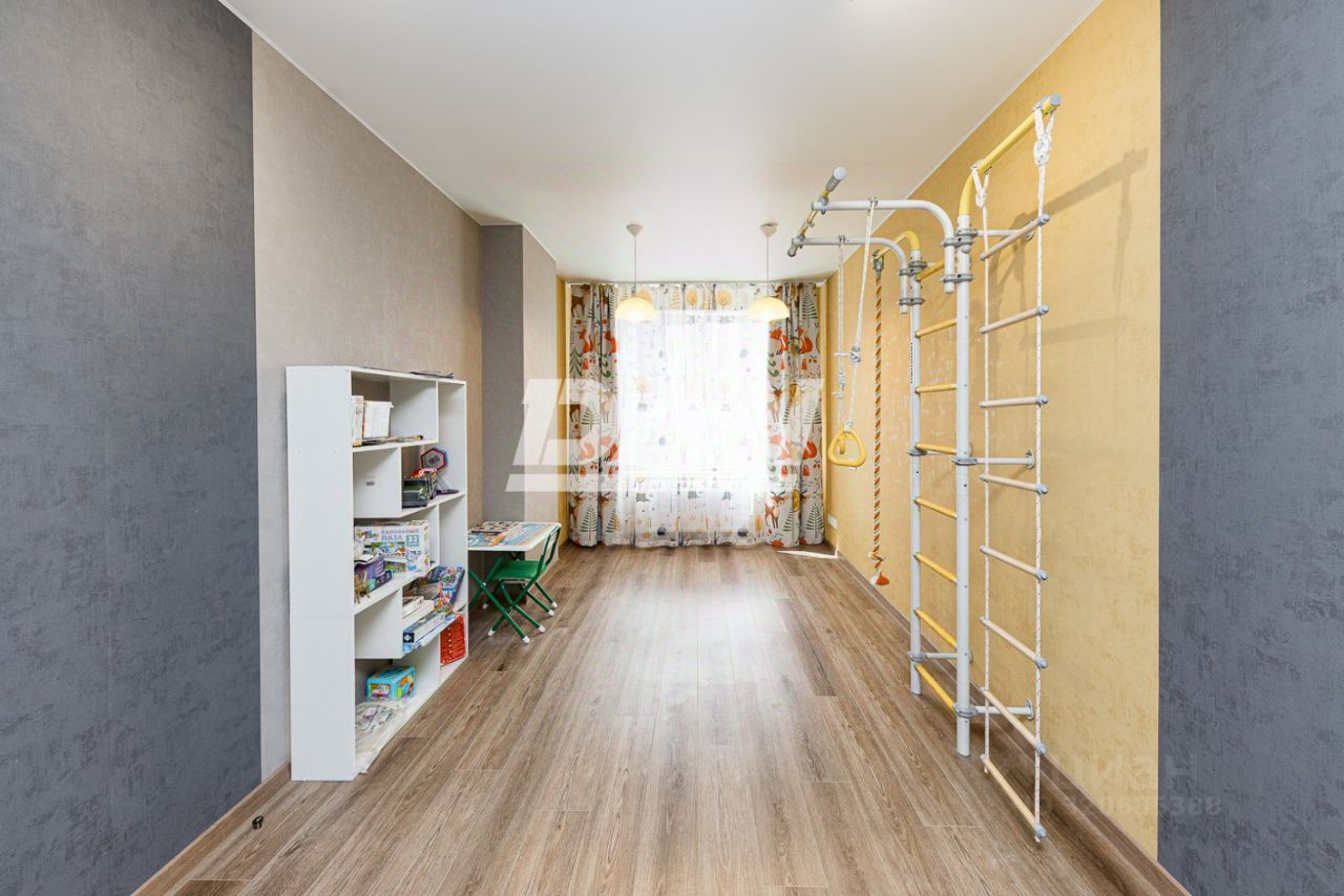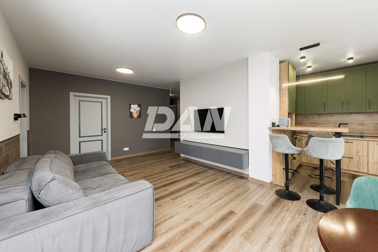 Планировка квартиры включает в себя: просторную кухню-гостиную 45,3 кв.м. с выходом на обустроенный балкон 5,8 кв.м с панорамным остеклением, спальню 15 кв.м, детскую комнату 19,8 кв.м, обустроенную гардеробную 4,9 кв.м, совмещенный санузел 5,6 кв.м, коридор. Окна квартиры выходят на южную и юго-западную сторону, из которых открывается красивый вид на город.