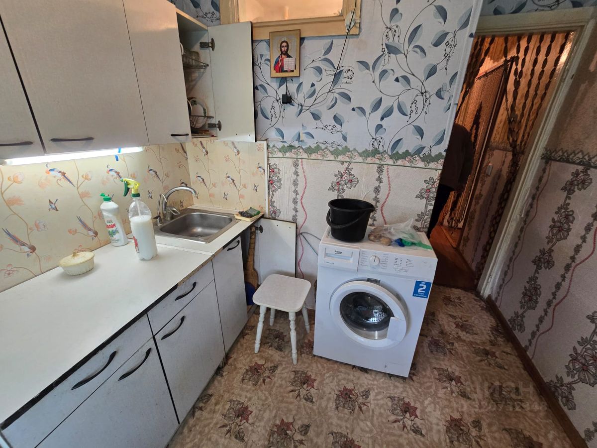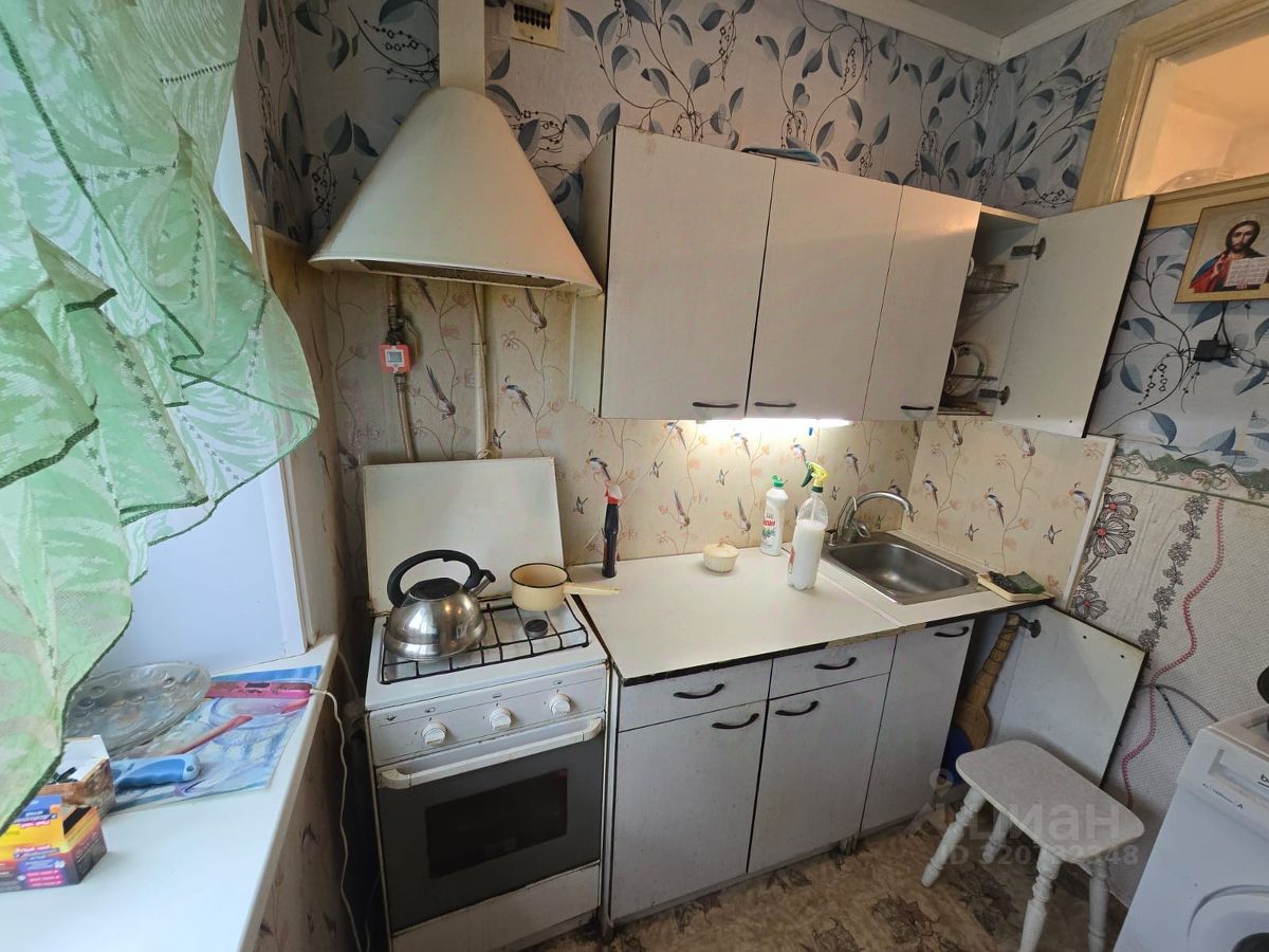 Квартира расположена на 4 этаже пятиэтажного дома. В ней остаётся кухонный гарнитур, газовая плита.