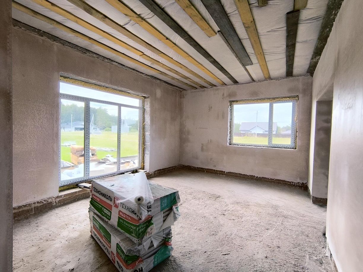 Внутри без отделки, однако все коммуникации подведены, в доме тепло, светло и хорошо.