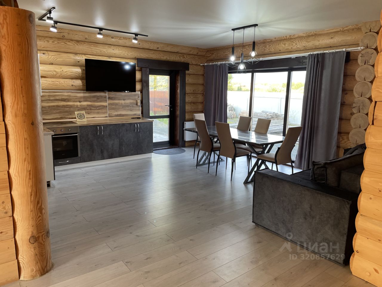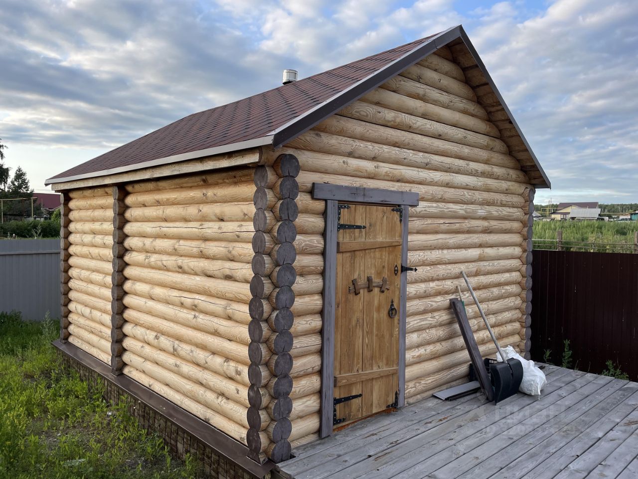 Дом 10*10 м. из цилиндрованного бревна диаметром 300 мм. Фундамент - свайно-ростверковый. Крыша - прямая, терраса. Панорамное окно на кухне. Студия + 3 комнаты. В доме газ, центральная вода, электричество 380 Вт., канализация - септик 5 кубов. Частично установлены мебель и бытовая техника. На участке расположена баня 4,5*4,5 м. из цилиндрованного бревна 220 мм. с отоплением и санузлом. Территория огорожена профнастилом, фасадная часть - евроштакетником. Ворота - откатные электрические. Имеется видеонаблюдение. Дом расположен на участке 6,5 соток. В доме никто не жил!