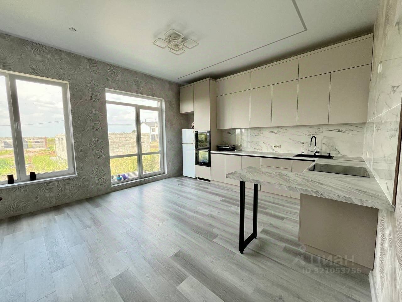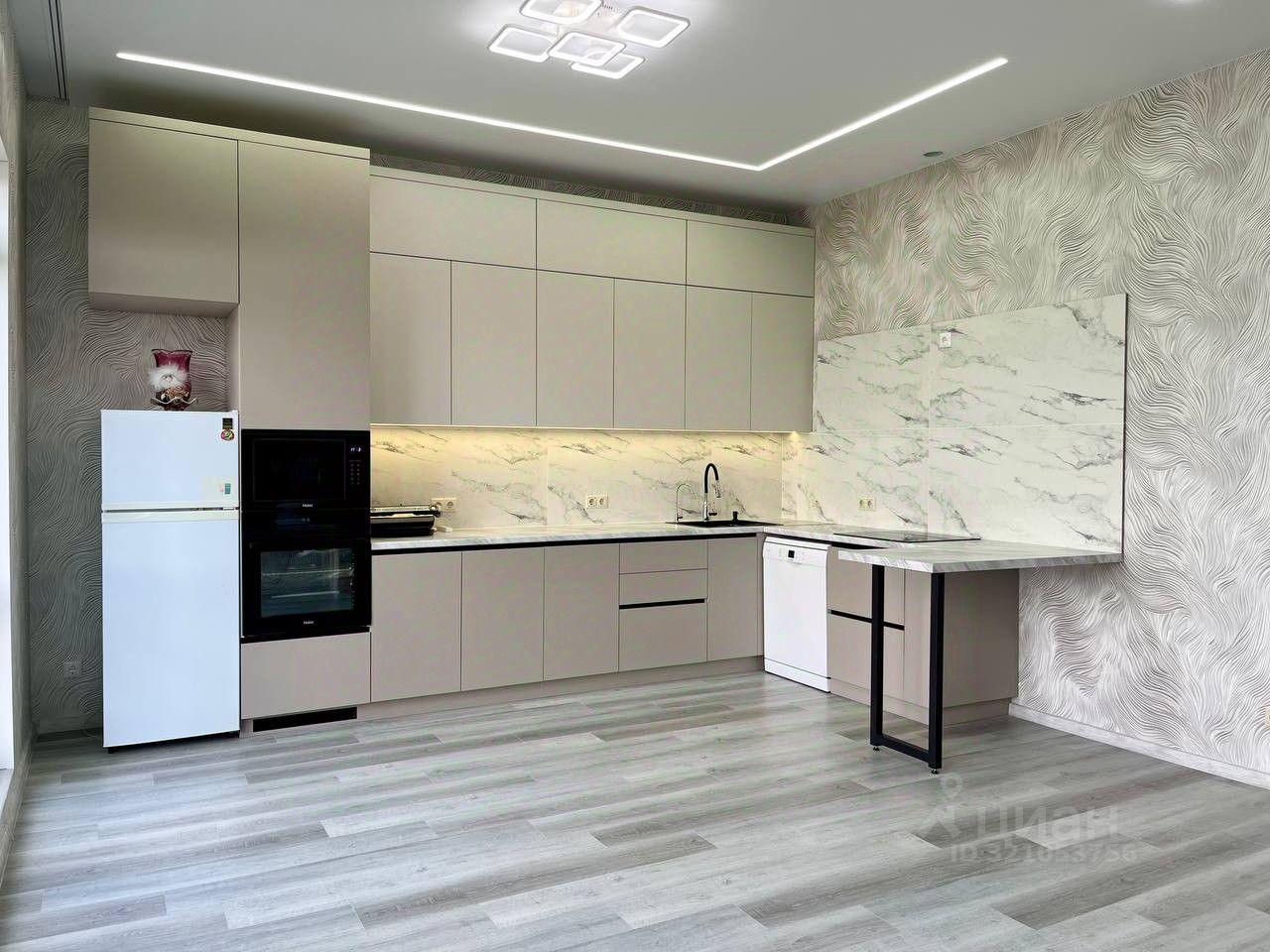 Кухня гостиная: Остается - новый кухонный гарнитур, холодильник, новая техника в виде микроволновой печи, духового шкафа, варочной панели, вытяжки, посудомоечной машины.