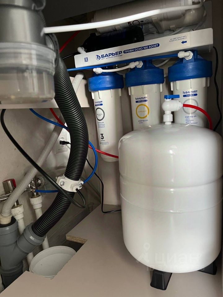 В санузле установлен гигиенический душ, малогабаритная система умягчения воды фирмы Аквафор, что позволяет не беспокоиться о наличии капель в душевой кабине. Так же уменьшается расходная часть моющих средств. Остается стиральная машина.