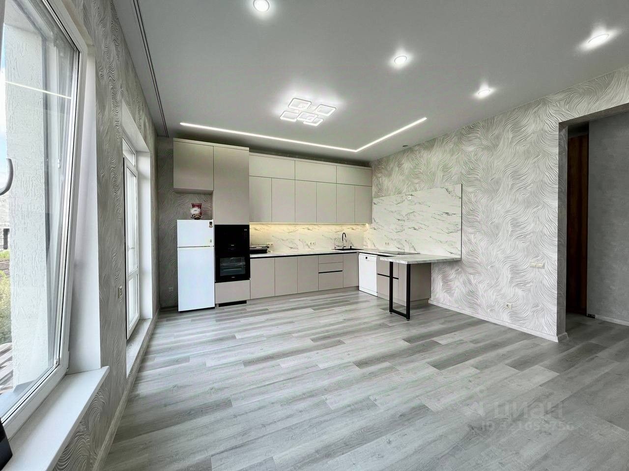 Кухня гостиная: Остается - новый кухонный гарнитур, холодильник, новая техника в виде микроволновой печи, духового шкафа, варочной панели, вытяжки, посудомоечной машины. Установлена трехступенчатая система очистки воды, подсветка с датчиками движения, качественные доводчики фирмы ВLUМ на дверях кухонного гарнитура. Электрика продумана до мелочей, множество розеток в том числе под кондиционер. Есть возможность разместить люстру в удобном для вас месте, в потолке заложены необходимые детали. Так же заказаны шторы блэкаут песочного цвета и льняная тюль высокого качества.