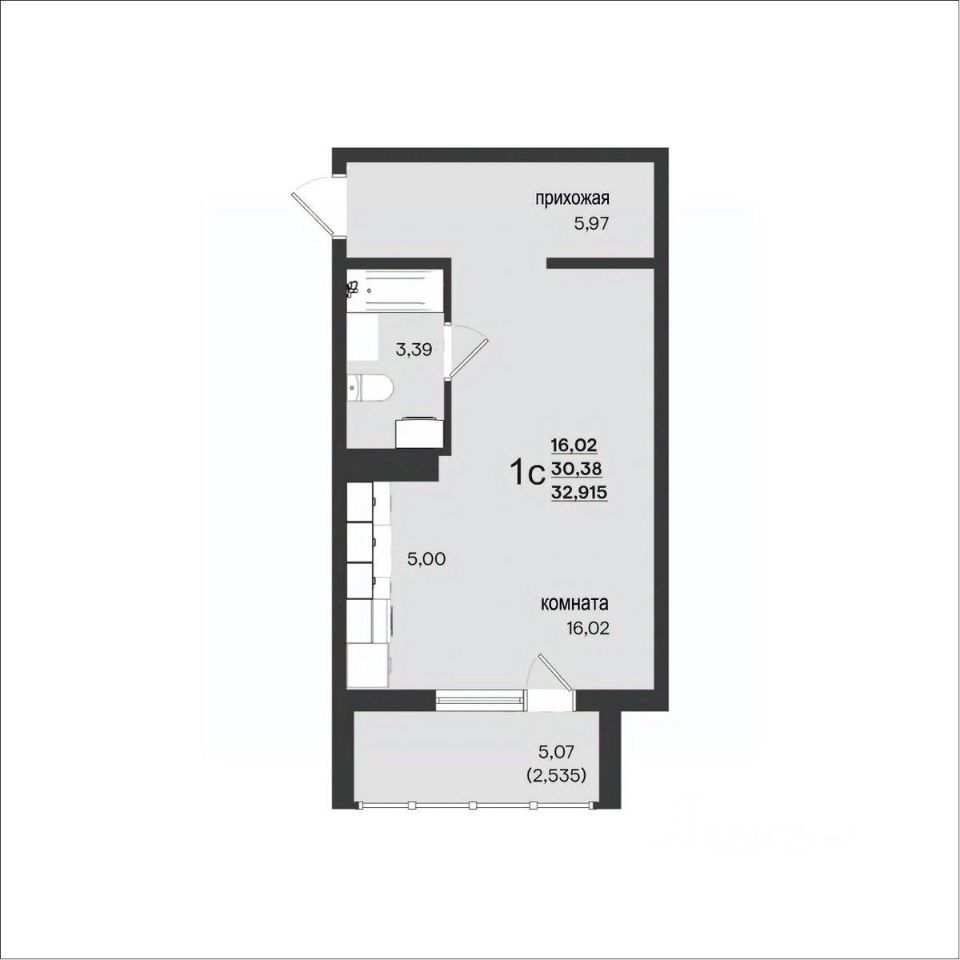 Общая площадь32,91 м2