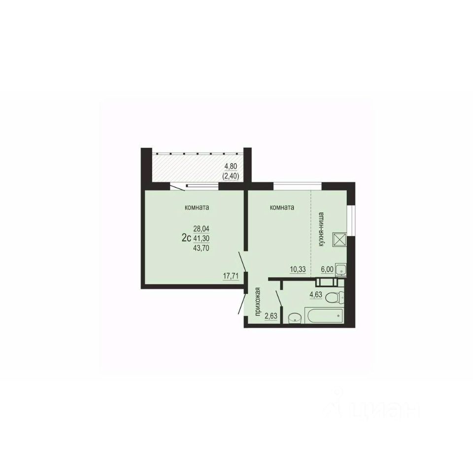 Общая площадь43,7 м2