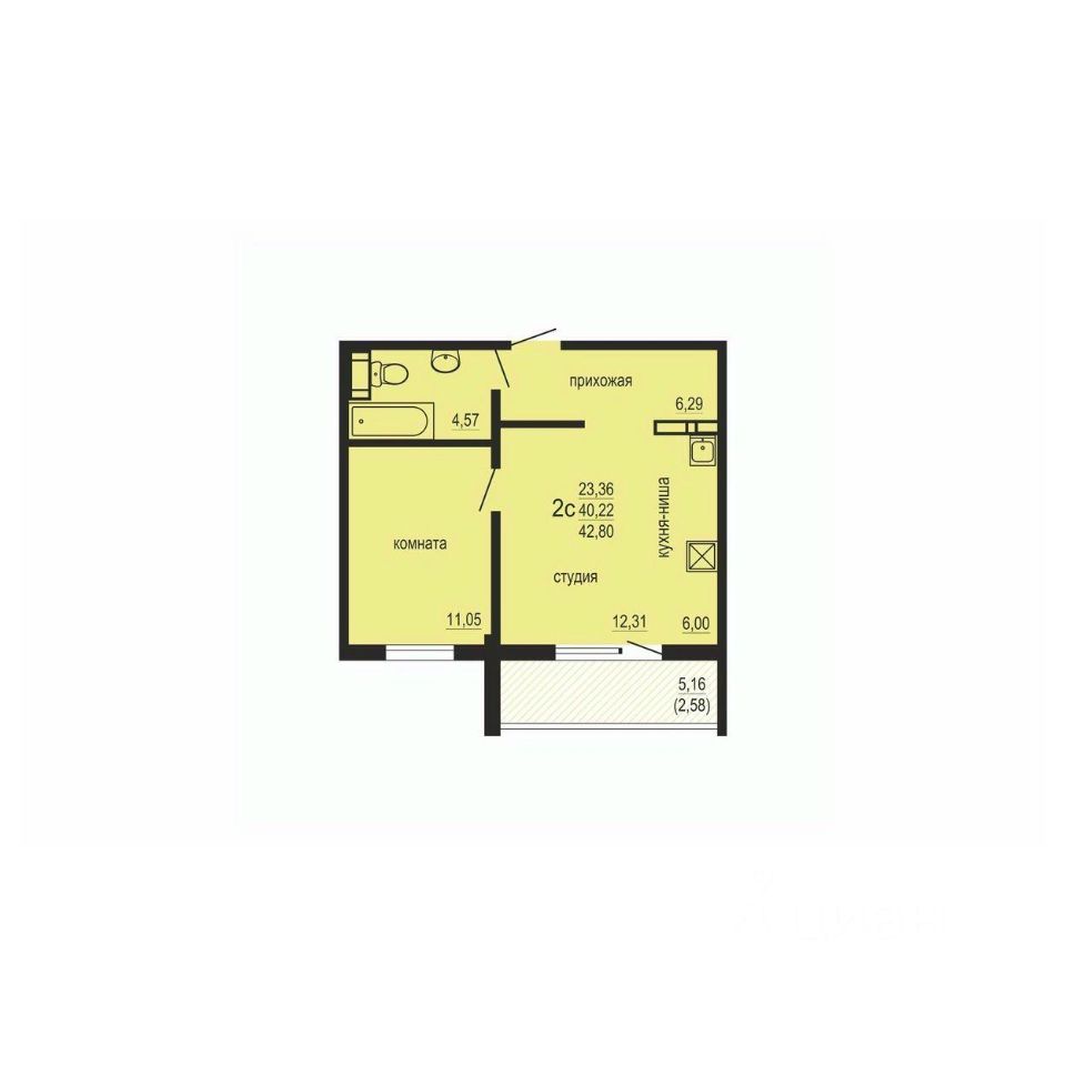 Общая площадь42,8 м2