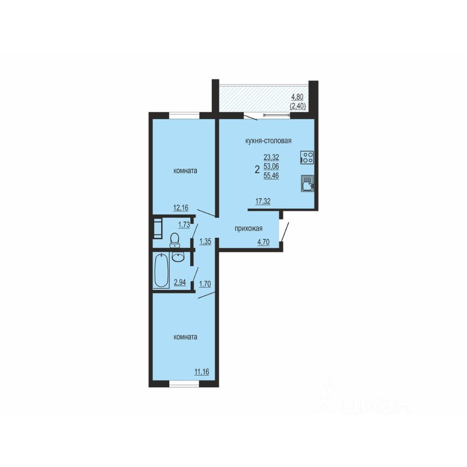 Общая площадь55,46 м2